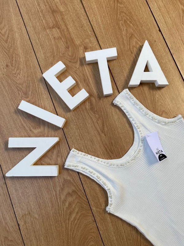 Musculosa de hilo morley con corte clásico. Escote y sisas con detalle en perlas.
