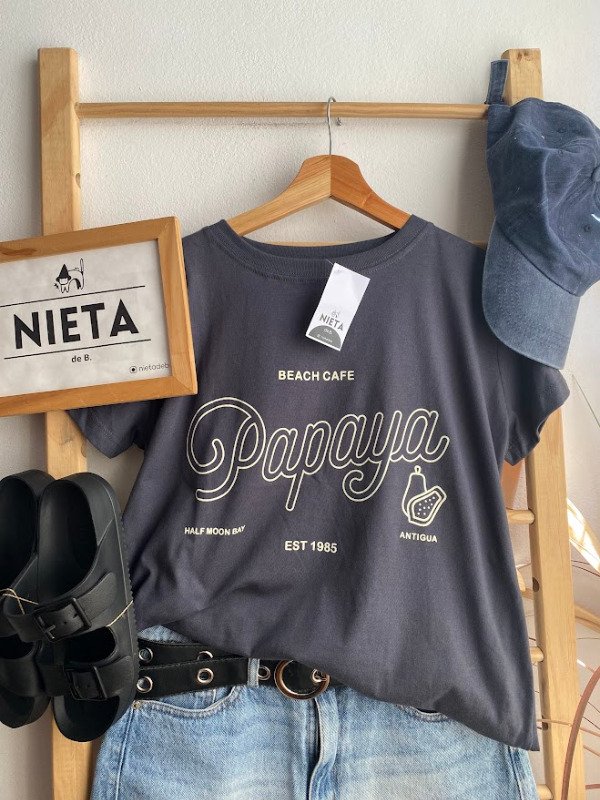 Remera de manga corta en algodón con estampa delantera "Papaya"