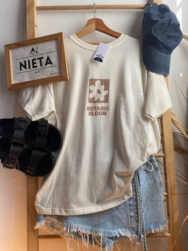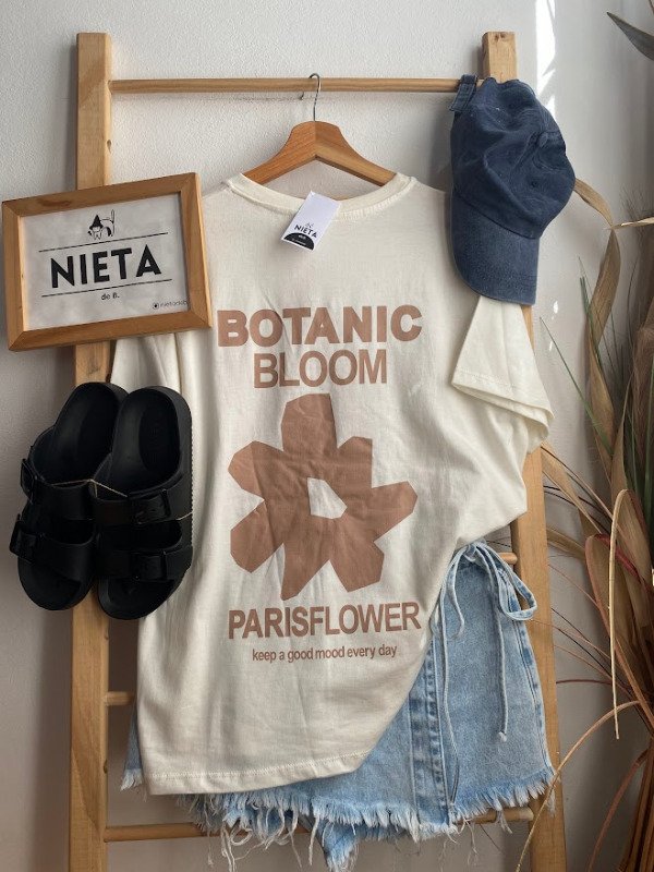 Remerón de mangas cortas en algodón con estampa delantera y trasera "Botanic Bloom"