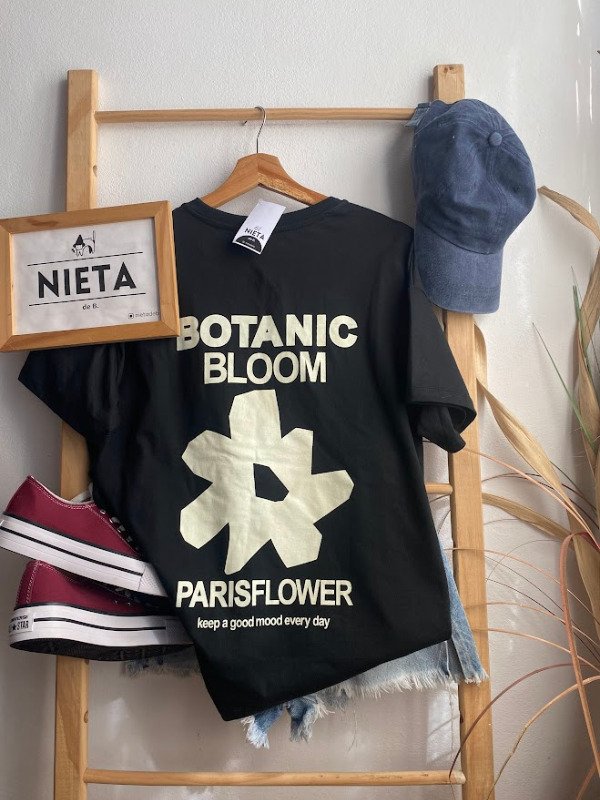 Remerón de mangas cortas en algodón con estampa delantera y trasera "Botanic Bloom"