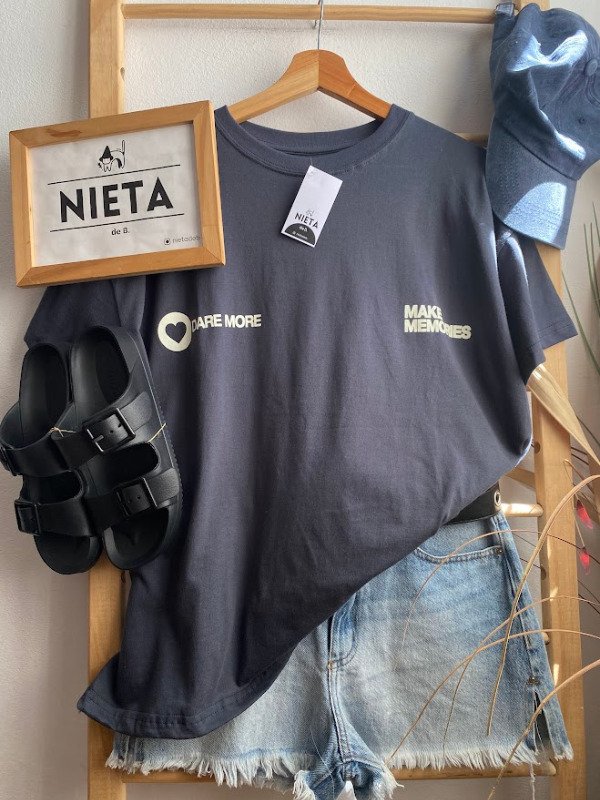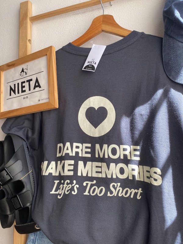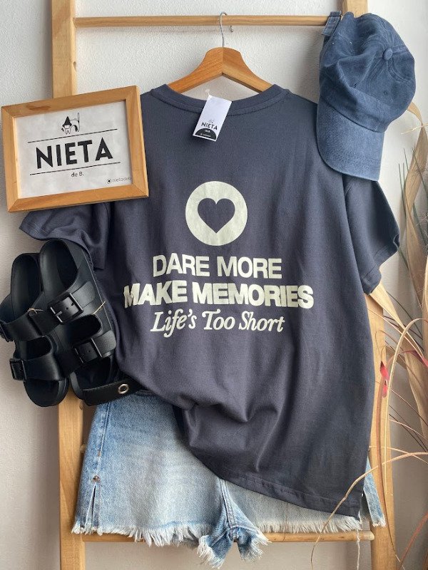 Remerón de manga corta en algodón con estampa delantera y trasera "Dare More"