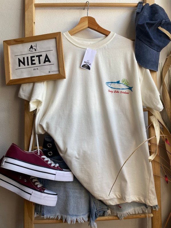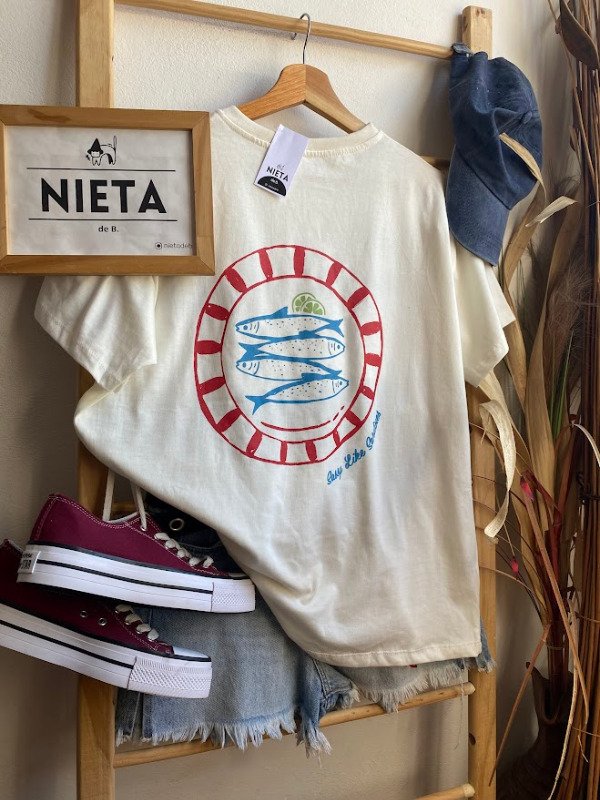 Remerón de mangas cortas en algodón con estampa delantera y trasera "Sassy like sardines"