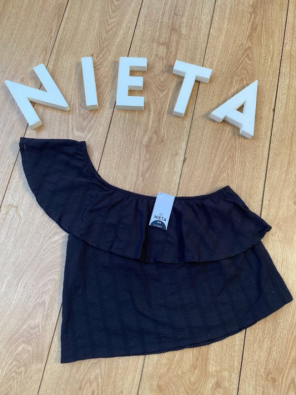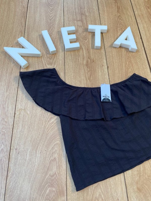 Top de cotton rústico bordado de un solo hombro con volado.