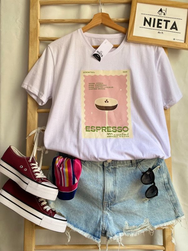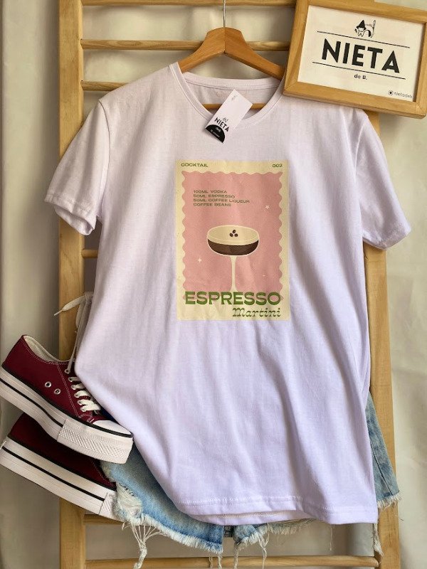 Remera de algodón, mangas cortas, con frente estampado "Cocktail"